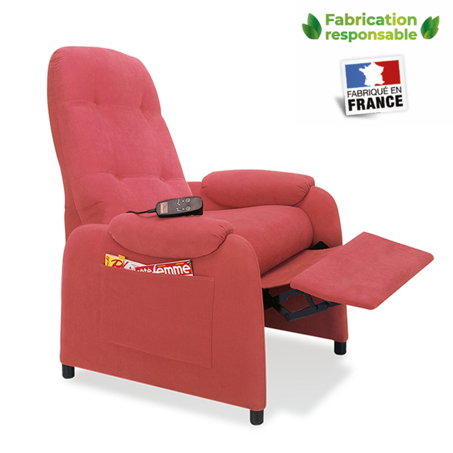 Equipé d'un mécanisme de bascule via le poids du corps, il offre trois positions de relaxation distinctes : fixe, jambes relevées et allongée. Existe également en fauteuil de relaxation 1 et 2 moteurs, en fauteuil releveur et en sofa 2 places fixes.