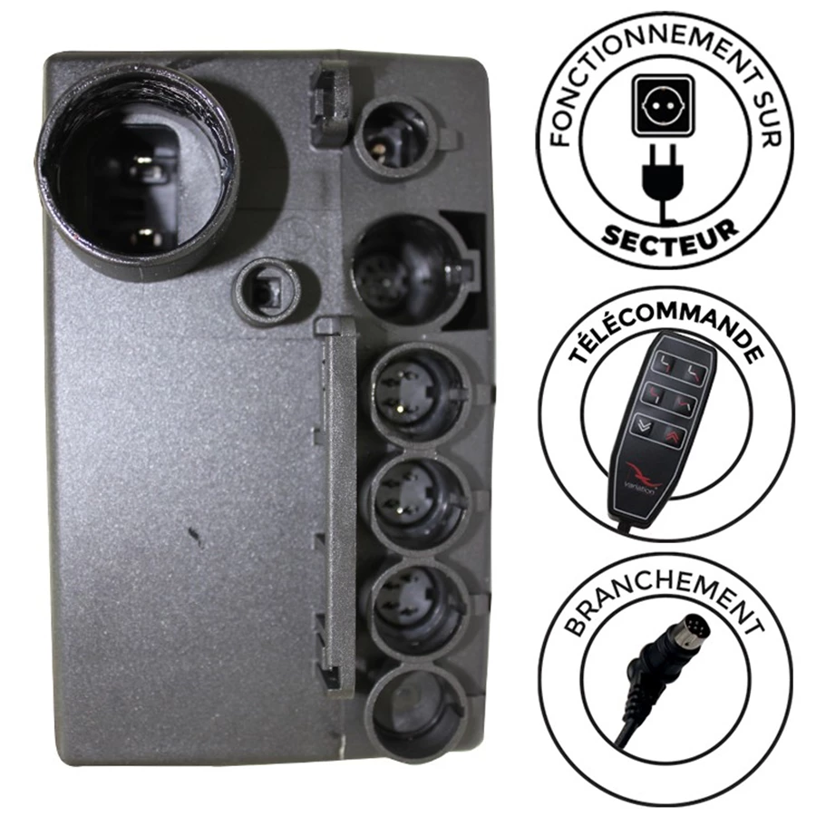 Boîtier de contrôle pour fauteuil électrique 3 moteurs releveur. Modèle Linak. Veuillez vérifier la compatibilité avec votre modèle de télécommande. En cas de doute contactez notre SAV Variation au 0 800 800 807 (appel gratuit). Compatible avec les modèles : Allegro, Bahamas, Floride, Louisiane, Pacific.